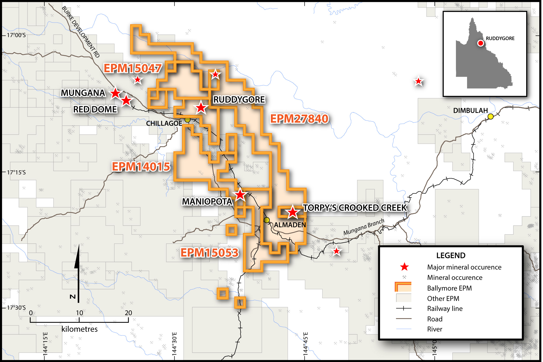 The Ruddygore Project is located adjacent to the town of Chillagoe in North Queensland and approximately 150 km west of Cairns. It comprises four granted EPMs and an EPM application covering an area of 556 km2. Historically, Chillagoe was a significant mining and smelting centre that was most active from 1888 to 1927, prior to further substantial production of gold, copper and silver from the Red Dome mine from 1986 to 1997.